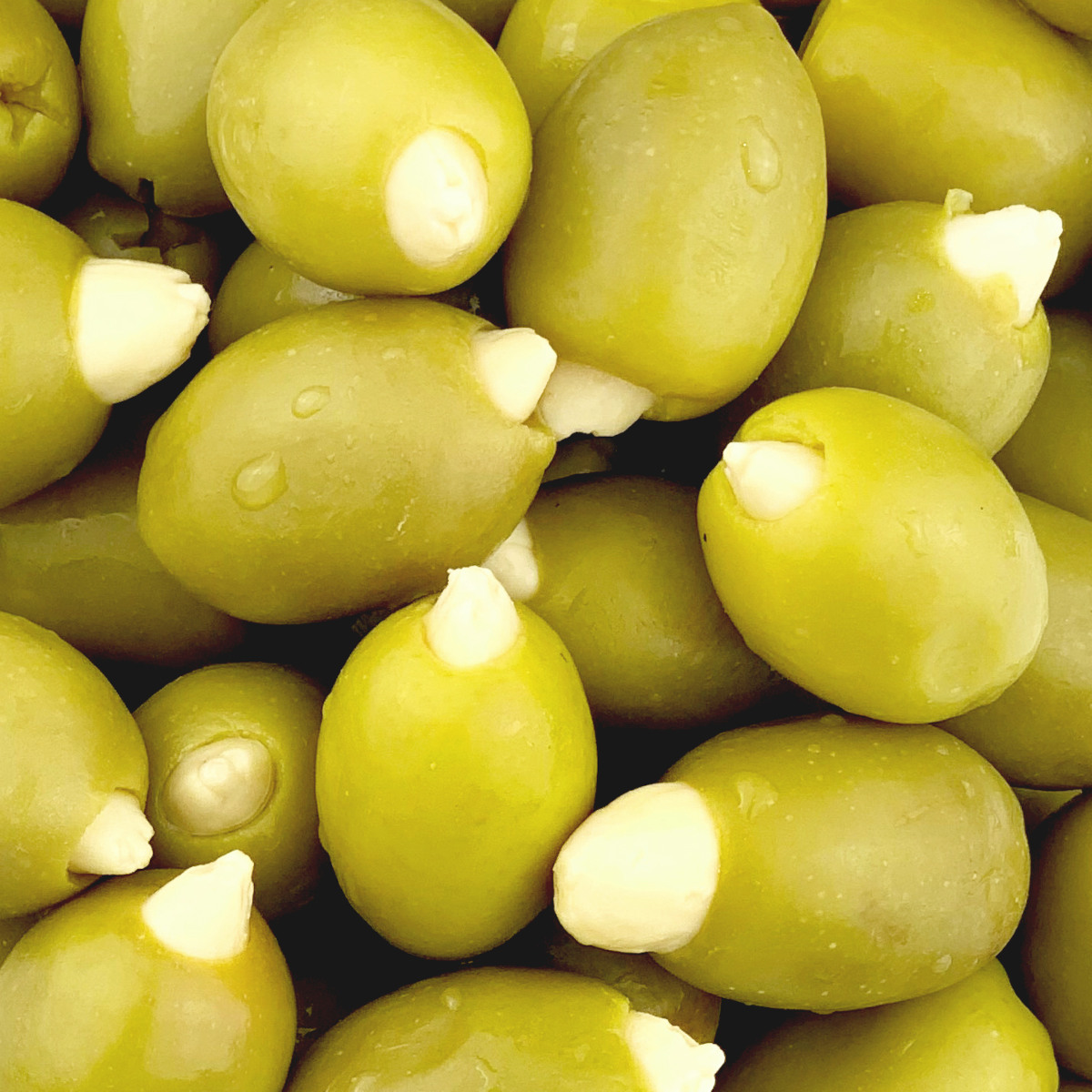 Vitlöks fyllda Haladiki oliver från Grekland är också perfekta som tilltugg. Fungerar också bra till mat, dryck och liknande. Också en av våra favoriter. Superfräscha missa inte dessa.